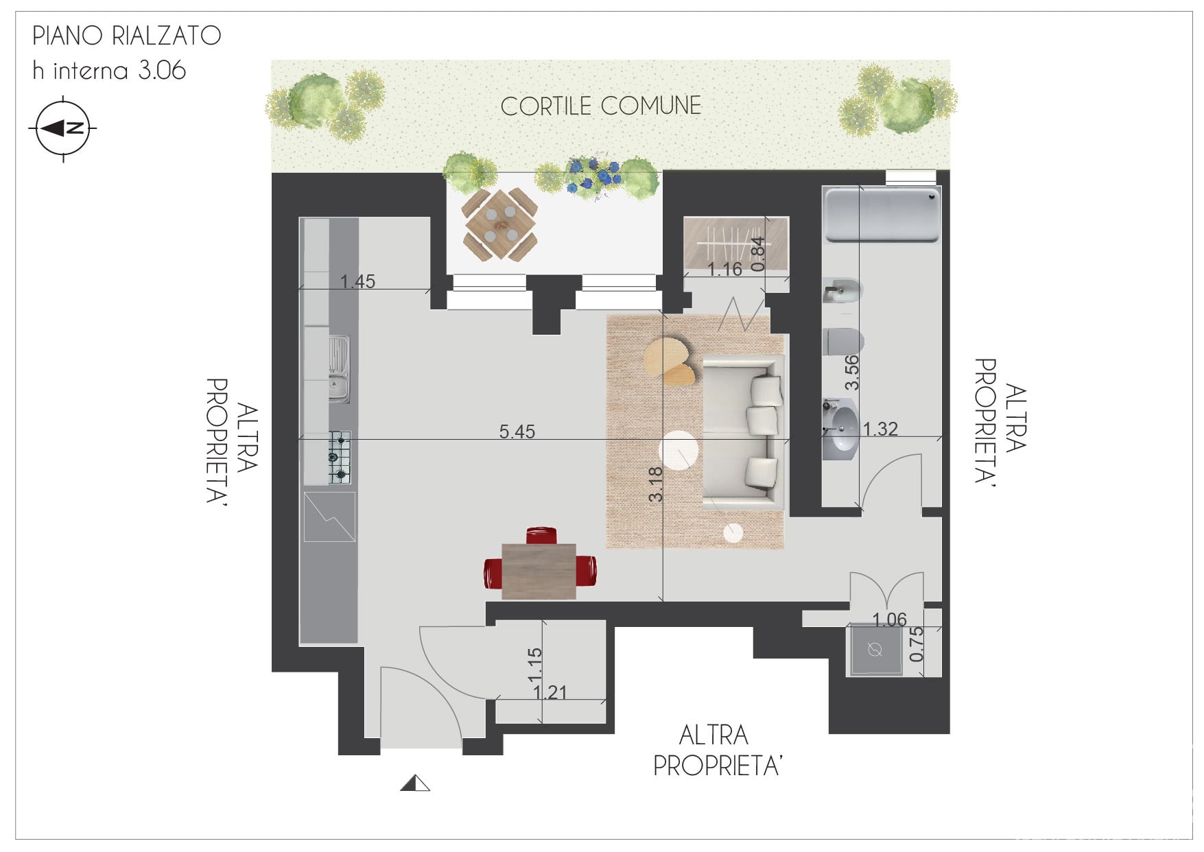 L’appartamento è stato recentemente ristrutturato e viene consegnato completo di arredo nuovo (comprensivo di lavapiatti e lavatrice).